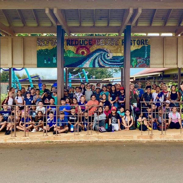 More responsible living has partnered with Surfrider Kauai Chapter to bring marine debris art into schools around Kauai. Students learn about ocean plastic, participate in a beach cleanup, sort, wash and process their marine debris and then make amazing art. This 16' mural was deisigned and directed by one of our artists, but the mural itself was created by over 90 5th grade students at Kalaheo Elementary School. Dozens of parents volunteered to orchestrate the event, and even the senator showed up. The mural hangs at the front of the school.